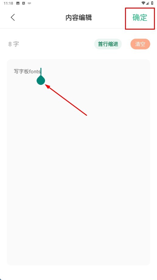 2、在编辑页输入内容后,点击右上角【确定-功能按钮】。