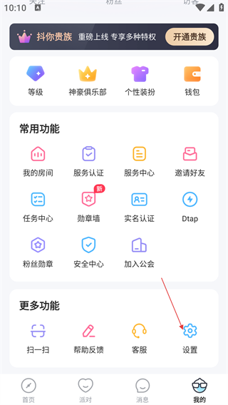2、点击底部的【我的】按钮进入个人中心页面,接着在“更多功能”区域找到并选择【设置】选项,即可进入设置界面。