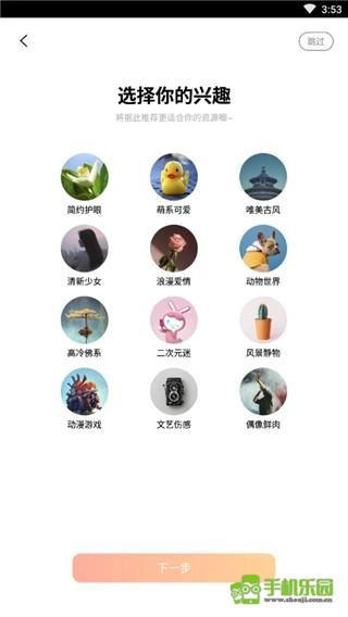 2、软件根据你的选择自动推送几款精美桌面,如不需要可以点击右上角跳过。