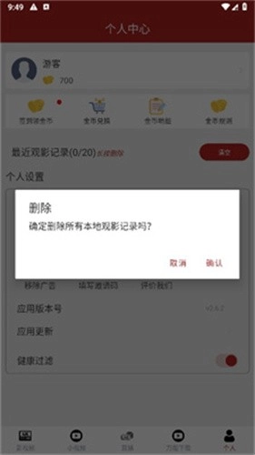 在提示框里,点击【确定】按钮,就能把所有的观影记录彻底清除,清除完成后,“追剧时光”区域就不会再显示任何观看记录了。