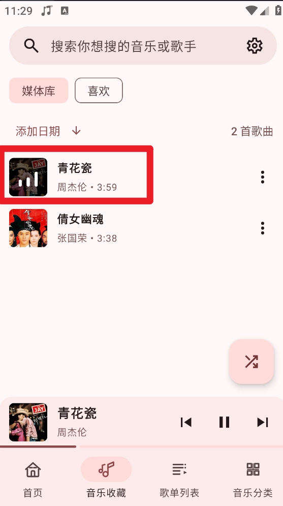 6、完成操作后进入音乐收藏板块,参照图示,就能查看已添加的音乐。