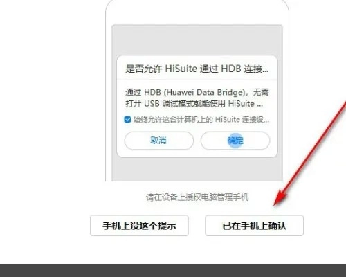2、手机插入电脑之后,在手机上会提示是否通过HDB连接设备,在手机上点击确定。