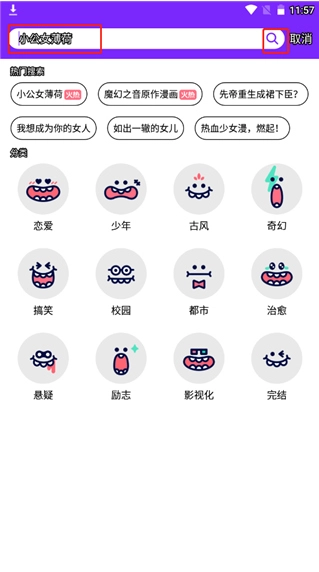 2、可以点击搜索框,输入漫画名,点击搜索;