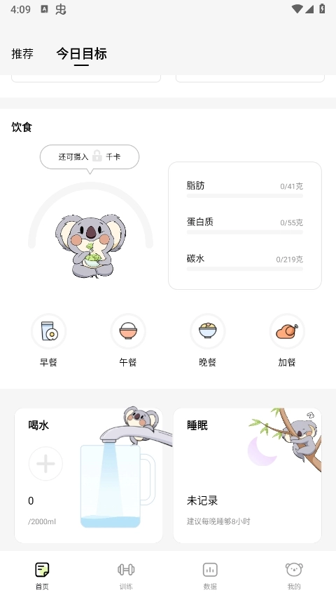 3、在首页可查看到今日目标,记录你每天的饮食量和运动量哦。