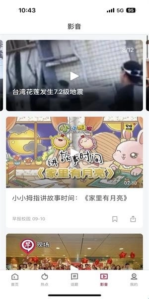5、在影音界面可以以视频的方式来听早报,没有了文字的枯燥,让阅读更有趣。