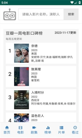 爱看机器人这款应用汇聚了全球各地的海量影视资源,不管你偏爱战争题材,还是迷恋爱情故事,这里都能满足你的需求,并且所有资源都是免费的!它借助网络爬虫技术,能轻松帮你筛选出全网可免费在线观看的影视内容,对追剧爱好者来说实在是一大福利。界面设计简洁大方,没有任何广告弹窗,直接搜索剧名就能快速找到想看的内容,操作起来非常便捷。