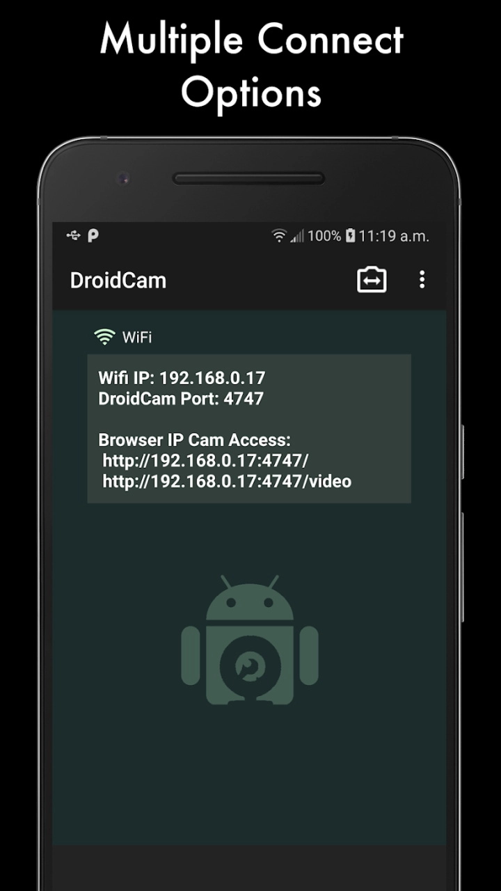 在你的电脑上借助“DroidCam网络摄像头”进行聊天,可同时传输声音与画面。