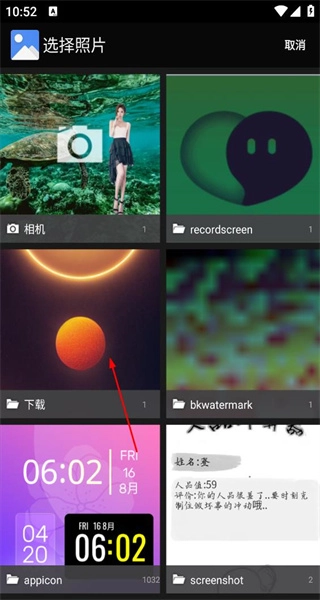 2、在选择照片页面,挑选目标背景图片并点击,进入该图片的裁剪调整操作界面。
