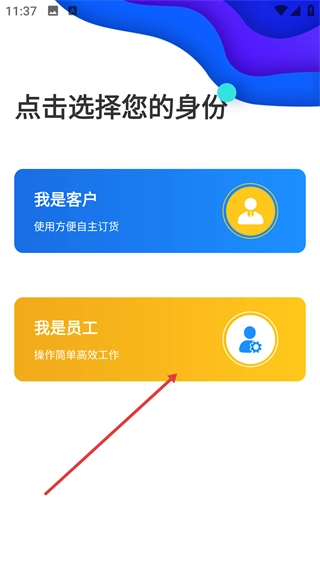 1、进入身份选择页面后,点击【我是员工】这一选项。此身份与高效工作的操作场景相匹配,选定后即可进入对应的功能界面。