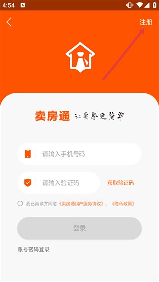 2、在个人中心页面进入登录界面,可通过【手机号】输入框填号,点击右上角【注册】按钮,进入账号注册流程。