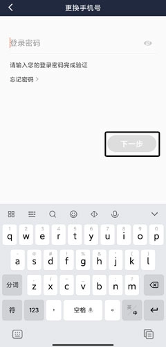 5、在更换手机号页面中输入密码,点击下一步按钮;