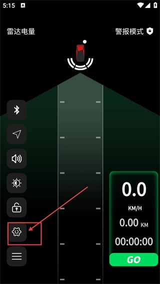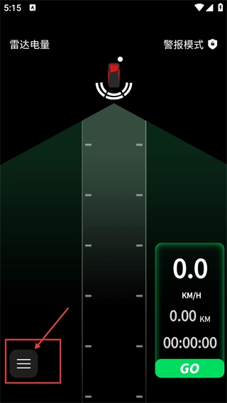 1、在显示【雷达电量】【警报模式】的界面里,点击左下角的菜单按钮,就能展开功能选项栏,方便后续对相关功能进行操作。