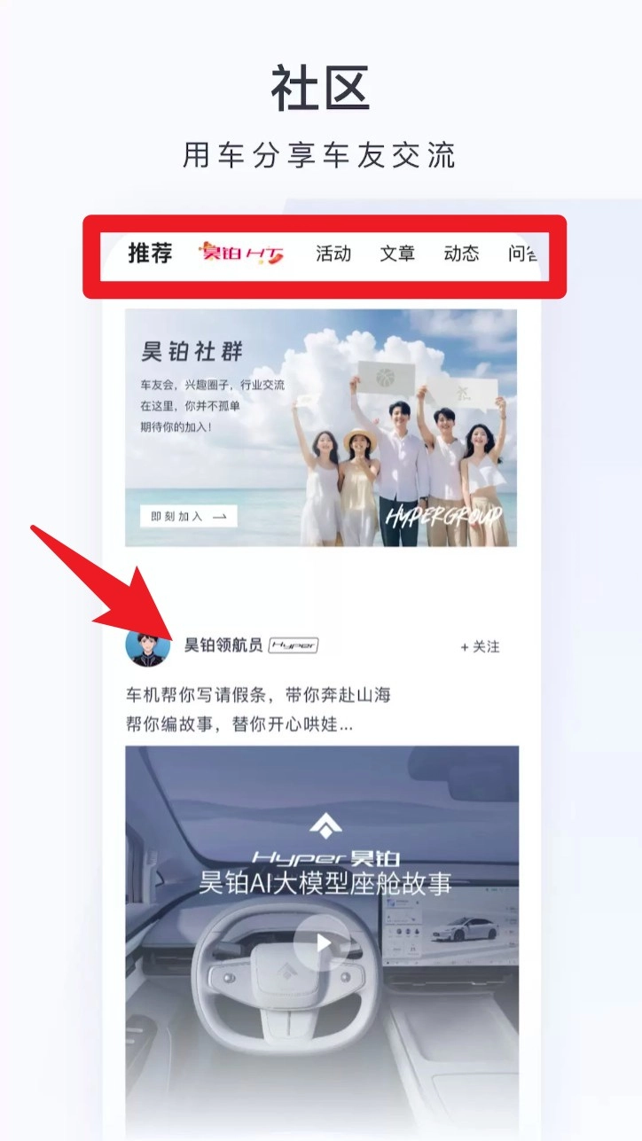 1. 在社区板块,你可以浏览平台推荐的各类内容,参与丰富多样的活动,查看感兴趣的文章和用户动态;同时,还能关注心仪的博主,或者加入昊铂社群,与其他成员交流互动。