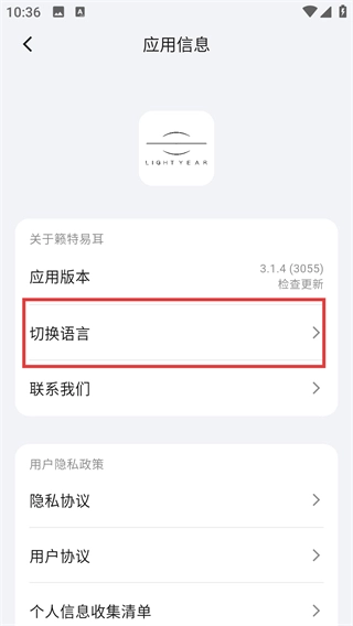 3、在应用信息页面找到【切换语言】选项并点击,就能打开语言选择的弹窗,准备更换应用语言啦。