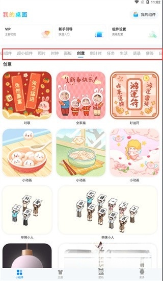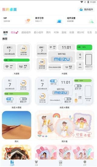 2、在顶部区域能够切换各类不同的小组件,像照片、时钟、倒计时、任务、便签之类的都可以进行切换。