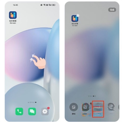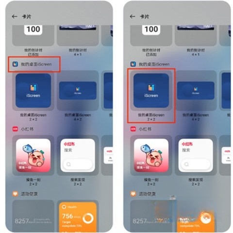 6、在列表中找到“我的桌面iScreen”,挑选小组件的尺寸,接着点击或者拖动它到桌面。