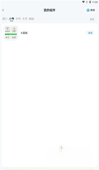 4、回到界面后,点击右上角的“我的组件”,即可查看已保存的小组件,接着点击“安装”按钮。部分机型支持直接点击【安装】将小组件添加至桌面,若该方式无效,可按照教程手动进行添加操作。
