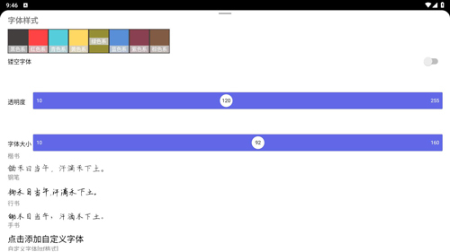 5、多样的自定义功能:你能够自行设置字帖格子的颜色与透明度,还可以对字体的颜色、大小以及透明度进行自定义调整。