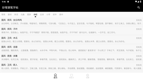 7、资源:唐诗、宋词、诗经、元曲、楚辞等,快速生成字帖。