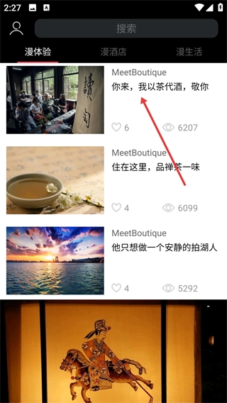 1、进入【漫体验】页面后,向上滑动屏幕即可加载更多资讯内容,进而浏览各类主题的文章列表。