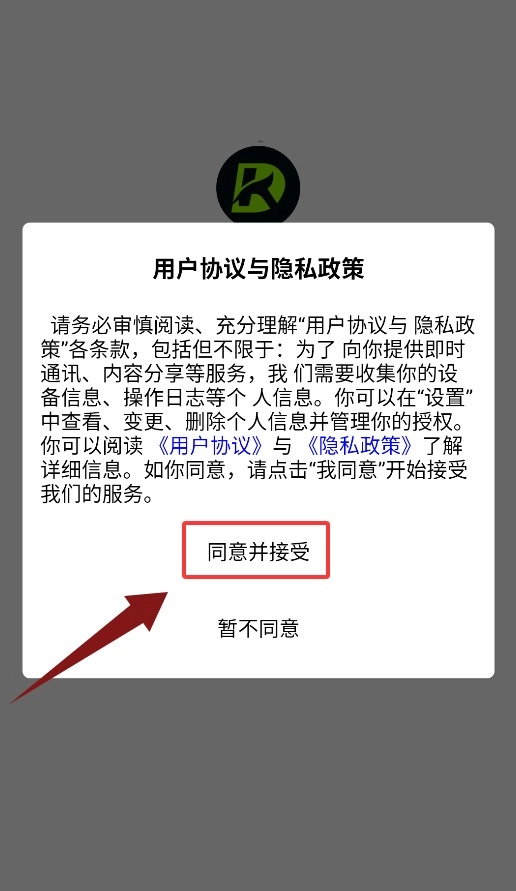 应用启动后会先展示使用协议,用户需点击同意,之后才能正式进入主界面。