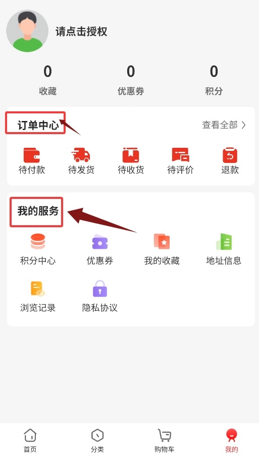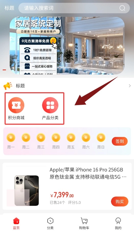 2、首页设有积分商城与产品分类两大模块,便于浏览与选购。