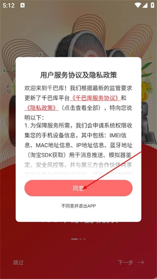 1、在用户服务协议与隐私政策的弹窗里,点击“同意”按钮,即可进入登录页面。