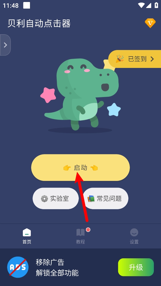 4、完成后返回首页,点击"启动"。