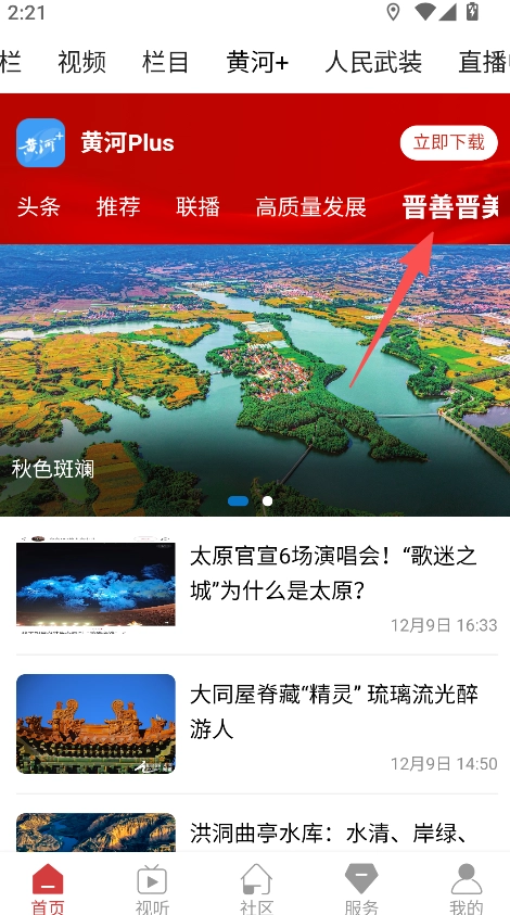 2、设有分类选择功能,在黄河+页选择晋善晋美分类,查看对应的资讯内容。
