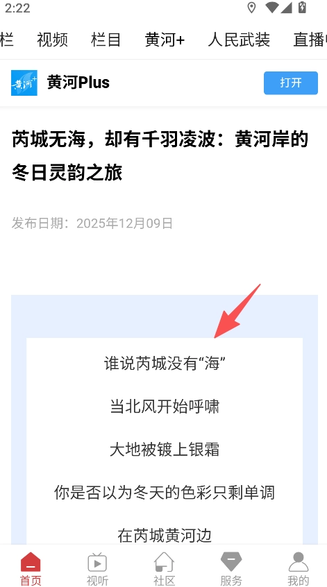 《掌上太谷》作为太谷地区的本地资讯应用软件,设有黄河+、人民武装等特色板块,同时划分了头条、推荐、联播等内容分类,能够呈现包括五年规划、高质量发展、太谷本地实时动态在内的多样化资讯信息。每条资讯均包含具体内容与发布时间,用户点击资讯条目即可查看详细内容,例如芮城黄河岸冬日灵韵相关报道。该软件精准适配太谷本地用户获取资讯、掌握本地及关联领域动态的实际需求。