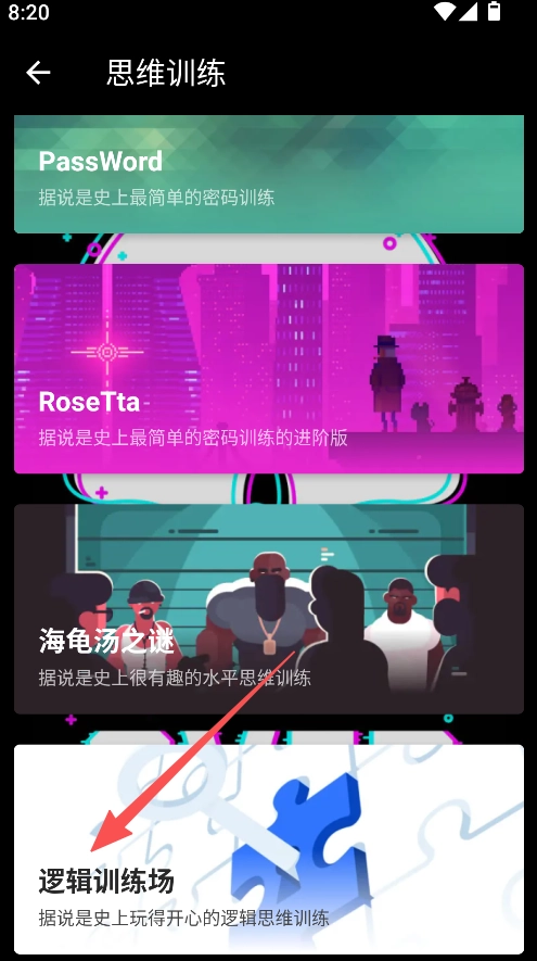2、思维训练划分多个训练项目,涵盖密码训练海龟汤逻辑训练等,适配不同的推理练习需求。
