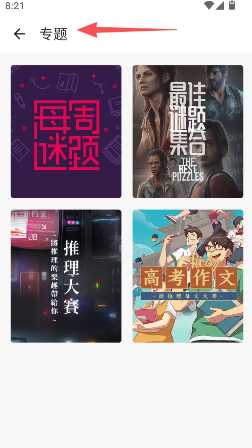 3、进入专题页面,查看每周谜题等推理相关内容。