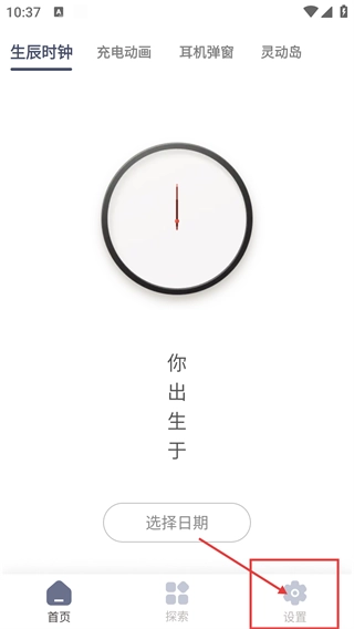2、进入主界面的【生辰时钟】板块,点击【选择日期】按钮,可设置出生时间,生成对应的生辰时钟内容。