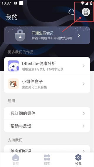3、进入软件的【我的】板块,点击右上角对应图标,可触发账号相关的操作界面,查看会员等功能。