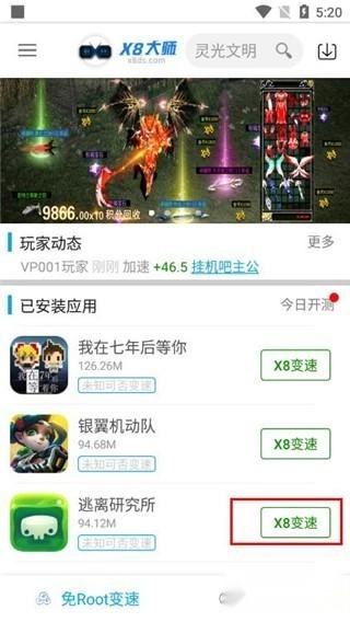 6、启动游戏,通过X8大师的悬浮窗进行加速。