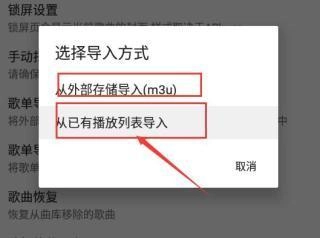 2、下拉选择歌单导入,将外部或者其他播放器的歌单导入到现有或新的播放列表中
