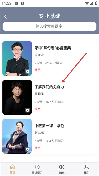 2、在课程列表中,选择目标免费课程(如《了解我们的免疫力》),进入课程详情页。