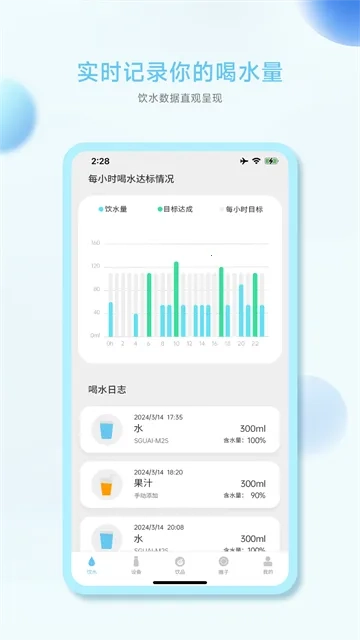 4. 详细记录每日饮水量,方便随时回顾,知晓自己的饮水情况。