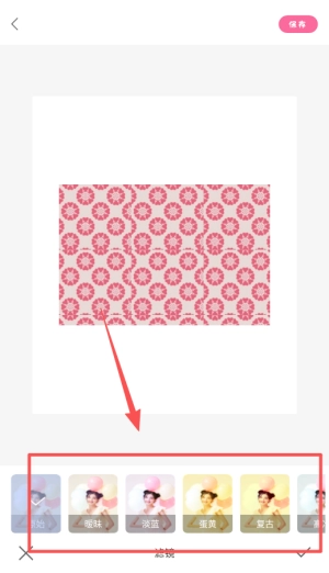 2、接着选择顶部滤镜栏尝试不同风格比如日系清新或复古胶片左右滑动实时预览效果直到满意为止。