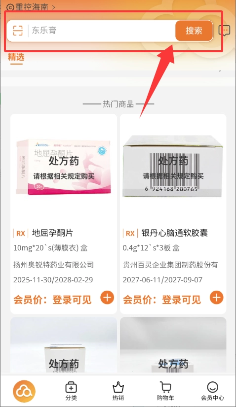 3、在搜索框中输入药品名称,随后点击搜索按钮,即可执行查询操作。