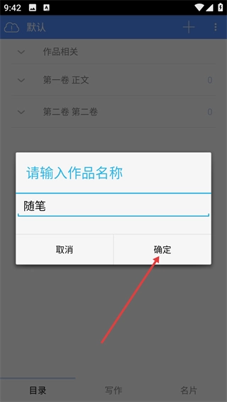 4、新作品创建完成后,页面会显示该作品(如“随笔”)及对应的卷集分类,可进行后续编辑。