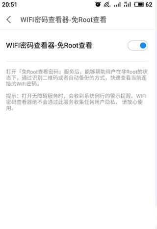 6、点击查看,可以看到wifi密码查看器 免root已经开启;