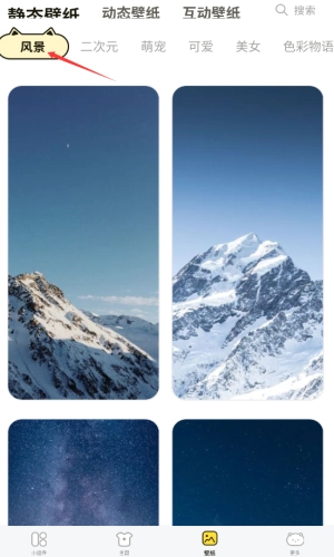 3、在壁纸库选择风景分类,浏览静态壁纸。
