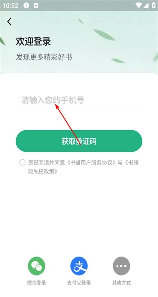 3、进入登录页面后,看到手机号输入框,输入手机号,点击获取验证码,推进登录操作。