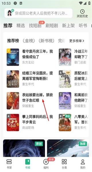 4、登录完成后,回到推荐页面,可浏览各类榜单书籍,选择感兴趣的内容进行阅读。