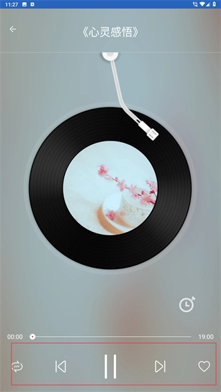 4、在《心灵感悟》播放页,通过底部控制栏的暂停、切歌等按钮,管理音乐播放,辅助情绪舒缓。