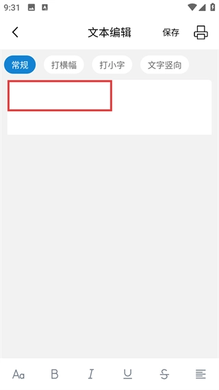 2、进入【文本编辑】页面后,可选择【常规】-【打横幅】等模式,激活输入框准备输入内容。