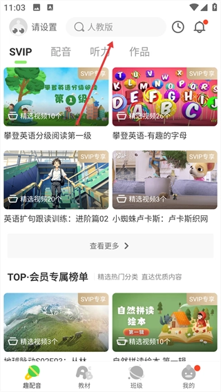 1、在趣配音页面,点击顶部的搜索栏,进入搜索操作界面。