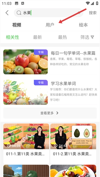 3、进入结果页面,点击顶部的“用户”标签,切换至用户类别。