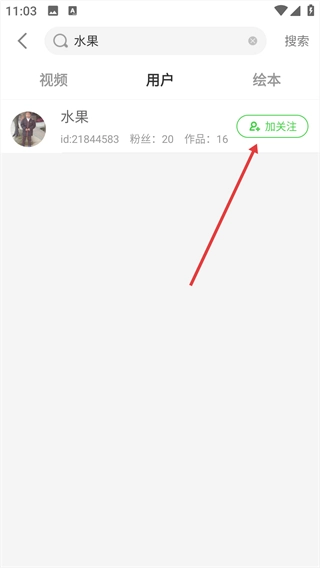 4、找到目标用户,点击其对应的“加关注”按钮,完成对该用户的关注。